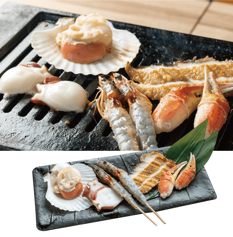 ご自身で炙ってお召し上がりください。立ち昇る香ばしい香り、口に入れると 旨みの肉汁と脂がグワっと押し寄せます。店主厳選の調味料、薬味でご自身のベストな 組み合わせを発見頂く楽しさもございます。